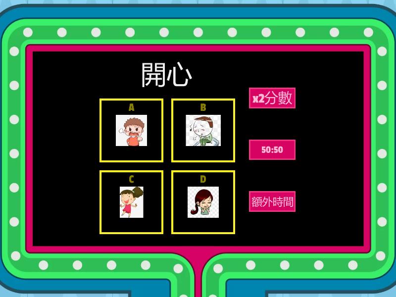 1) 開心 a) b) c) d) 2) 生氣 a) b) c) d) 3) 傷心 a) b) c) d) 4) 害怕 a) b) c) d) 5) 緊張 a) b) c) d) 6) 愉快 a) b) c) d) 7) 高興 a) b) c) d) 8) 失望 a) b) c) d) 9) 好奇 a) b) c) d) 10) 擔心 a) b) c) d)