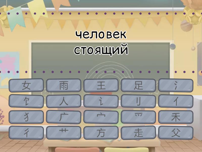 亻 - человек стоящий, 父 - отец, 氵 - вода, 讠 - речь, 宀 - крыша, 彳 - двойной человек, 王 - нефрит, 雨 - дождь, 刂 - длинный нож, 方 - квадрат, 走 - идти, 广 - навес, 艹 - трава, 犭 - животное, 饣 - еда, 足 - нога, 禾 - саженец, 人 - человек тянущийся, 女 - женщина, 爫 - когти,