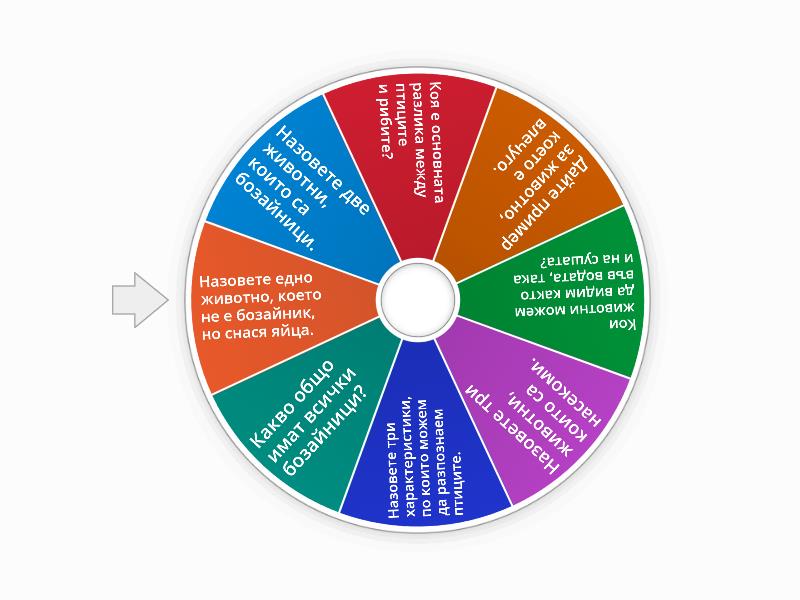 1) Назовете две животни, които са бозайници. 2) Коя е основната разлика между птиците и рибите? 3) Дайте пример за животно, което е влечуго. 4) Кои животни можем да видим както във водата, така и на сушата? 5) Назовете три животни, които са насекоми. 6) Назовете три характеристики, по които можем да разпознаем птиците. 7) Какво общо имат всички бозайници? 8) Назовете едно животно, което не е бозайник, но снася яйца.