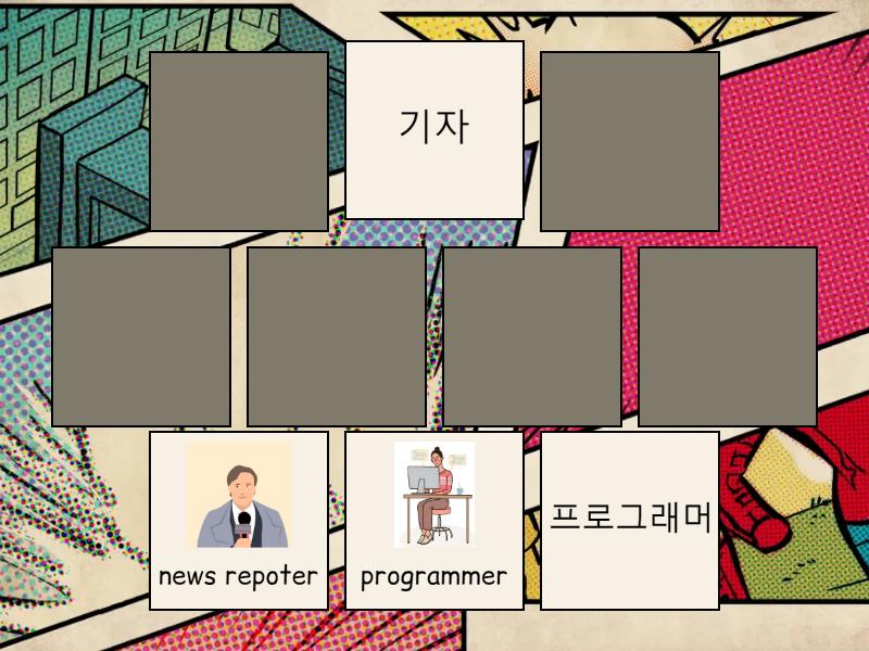news repoter - 기자, programmer - 프로그래머, athlete - 운동선수, cook - 요리사, actor - 배우,