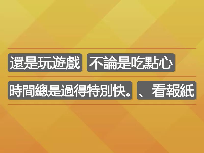不論是吃點心 、看報紙 還是玩遊戲 時間總是過得特別快。, 多希望時間暫停 讓我可以永遠停留在 這美好的幸福時光。, 回到家裡 常有美味的點心 對著我們招招手, 好友們 常常不約而同 來我家 寫功課, 我 總是 飛也似的 趕回家, 大家都 奮勇爭光 不落人後, 我們 經常 玩到 太陽 快下山, 香氣 撲鼻 的 奶油 餅乾, 層次 分明 的 千層糕, 軟綿 可口 的 紅豆湯,