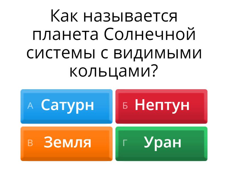 1) Как называется планета Солнечной системы с видимыми кольцами? a) Сатурн b) Нептун c) Земля d) Уран 2) Самая большая планета Солнечной системы? a) Земля b) Юпитер c) Меркурий d) Плутон 3) Сколько планет в составе Солнечной Системы? a) 9 b) 8 c) 7 d) 11 4) Солнце - это... a) Комета b) Планета c) Звезда d) Ничего 5) Выбери картинку, где верно расположены первые три планеты Солнечной Системы. a) b) c) 6) Самая близкая к Солнцу планета - это... a) Меркурий b) Земля c) Венера d) Нептун 7) Выбери НЕверные утверждения: a) Земля - это одна из планет Солнечной Системы b) Солнце - ближайшая к нам звезда c) Специалистов, изучающих астрономию, называют астронавтами d) Солнце движется вокруг Земли 8) Отметь газовых гигантов Солнечной Системы a) Уран b) Земля c) Юпитер d) Сатурн e) Венера f) Нептун 9) Выберите верные утверждения. a) Земля постоянно вращается вокруг своей оси. b) Земля совершает полный оборот вокруг своей оси за год c) Верны оба утверждения d) Неверны оба утверждения