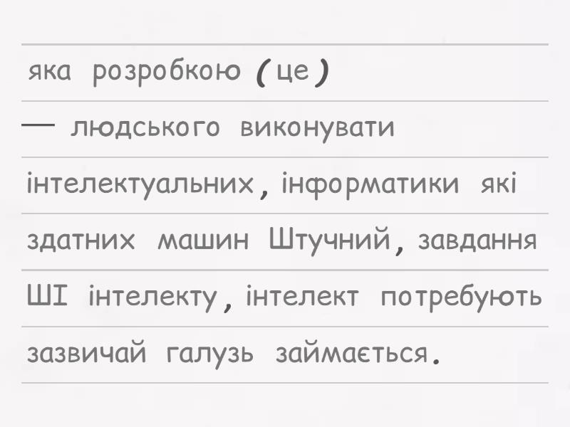 Штучний інтелект (ШІ) — це галузь інформатики, яка займається розробкою інтелектуальних машин, здатних виконувати завдання, які зазвичай потребують людського інтелекту.,