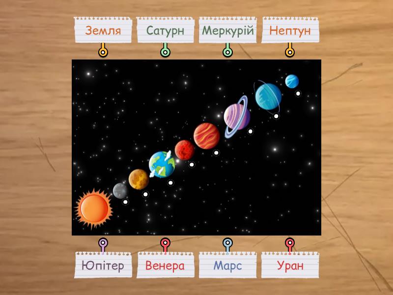 Меркурій, Венера, Земля, Марс, Юпітер, Сатурн, Уран, Нептун.