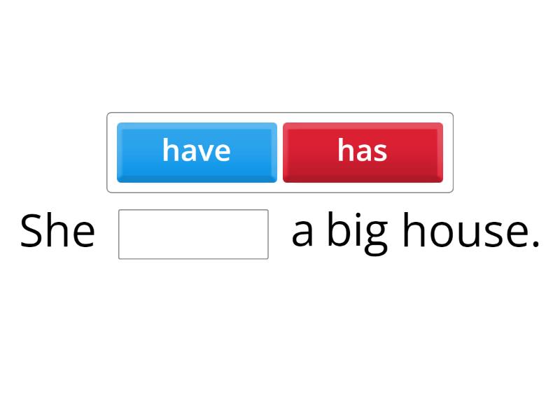 She ____ a big house. You ____ a nice car. He ____ long hair. I ____ so many friends. We ____ a lot of homework. It ____ a loud sound. They ____ a lot of money. We ____ a dog. Jenny ____ three dogs and a cat Bob ____ a blue school bag. The cat ____ a warm bed to sleep in. The boy and the girl ____ ten bedrooms in their house. They ____ any homework. She ____ a calculator. We ____ any homework.