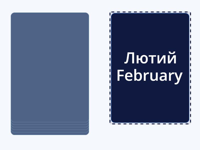 Січень January , Лютий February , Березень March , Квітень April , Травень May , Червень June , Липень July .