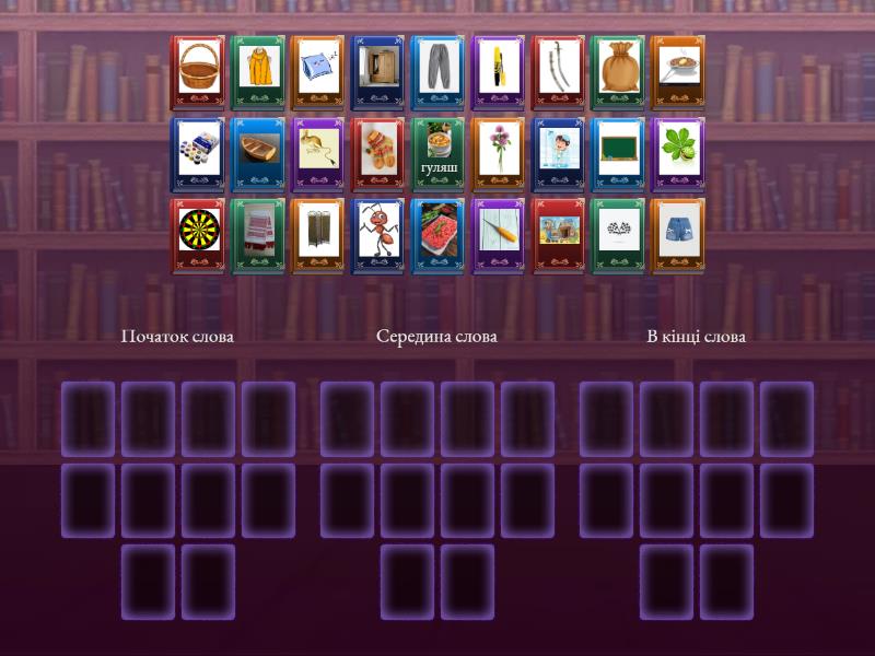 Початок слова: , , , , , , , , , , Середина слова: , , , , , , , , , , В кінці слова: , , , , , , гуляш,