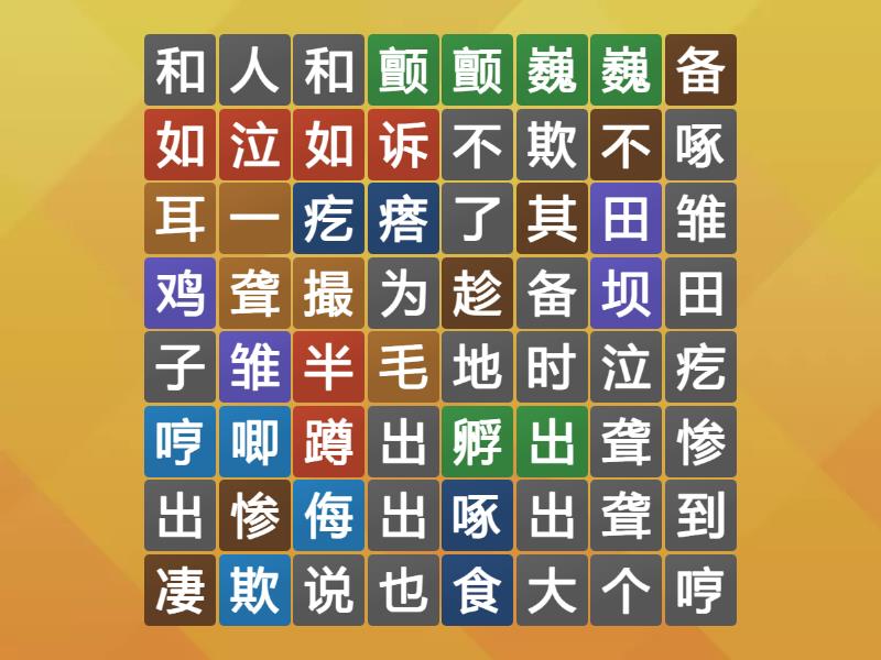 颤颤巍巍, 田坝, 如泣如诉, 欺侮, 趁其不备, 疙瘩, 耳聋, 孵出, 鸡雏, 半蹲, 哼唧, 凄惨, 啄食, 一撮毛,