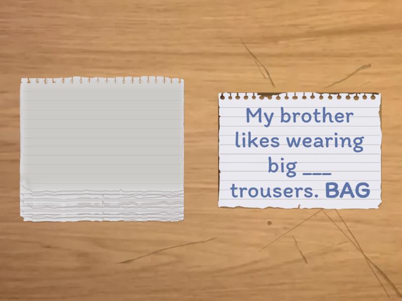 ___ is a sign of bad character. RUDE, She has a very pleasant ___ PERSONAL, This is everyone’s ___ RESPONSIBLE, I love autumn because of the ___ of its colour. RICH, People complain about the lack of ___ CREATIVE, I love her ___ BEAUTIFUL, There were more than 1000 ___ COMPETE, Travel ___ the mind. BROAD, Let’s ___ and make a conclusion. SUMMARY, We will ___ all your dreams. REAL, We are going to ___ it. FULFILLMENT, It was a ___ road. DIFFICULTY, My brother likes wearing big ___ trousers. BAG, Everything is ready for ___ elections. PRESIDENT, It was absoutely ___ TASTE, The food looks ___ TASTE, We arrived ___ on the shore. SAFE, ___ we were lost. OBVIOUS, He was ___ right. ABSOLUTE.