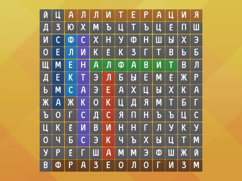 Алфавит, Синтаксис, Лексика, Флекс, Фразеологизм, Семема, Аллитерация,