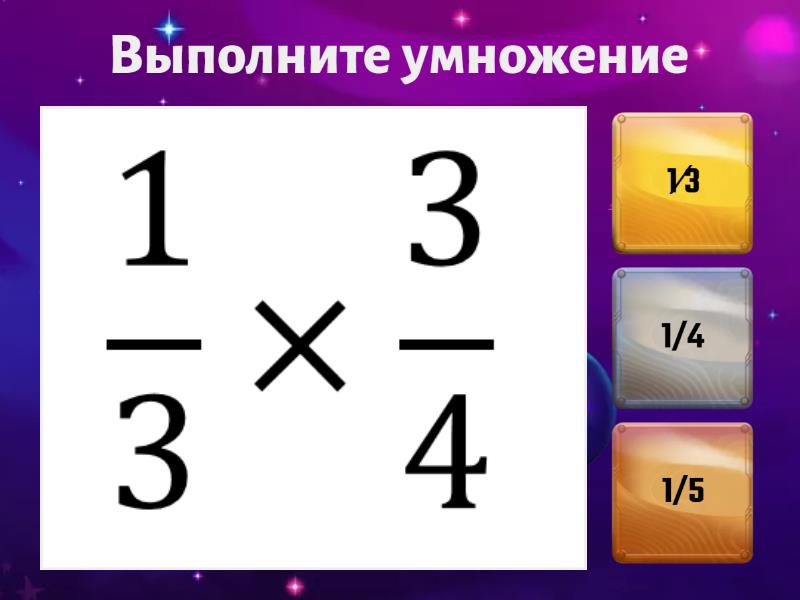 1) Выполните умножение a) 1∕3 b) 1/4 c) 1/5 2) Выполните умножение a) 1/4 b) 7/8 c) 3/16 d) 3/8 3) Выполните умножение a) 10 b) 3 c) 12 d) 16 4) Выполните умножение a) 3 b) 2/4 c) 2/3 d) 2 5) 2/4 * 2/5 a) 4/20 b) 10/8 c) 4/5 6) 4/8 * 4/3 a) 16/24 b) 16/32 c) 16/16 7) 7/8 * 3/7 a) 21/56 b) 28/56 c) 7/54 8) 6/8 * 4/6 a) 24/48 b) 24/24 c) 24/56 9) 2/4 *7/8 a) 14/32 b) 14/24 c) 14/40 10) 6/7* 6/5 a) 36/35 b) 36/45 c) 36/75