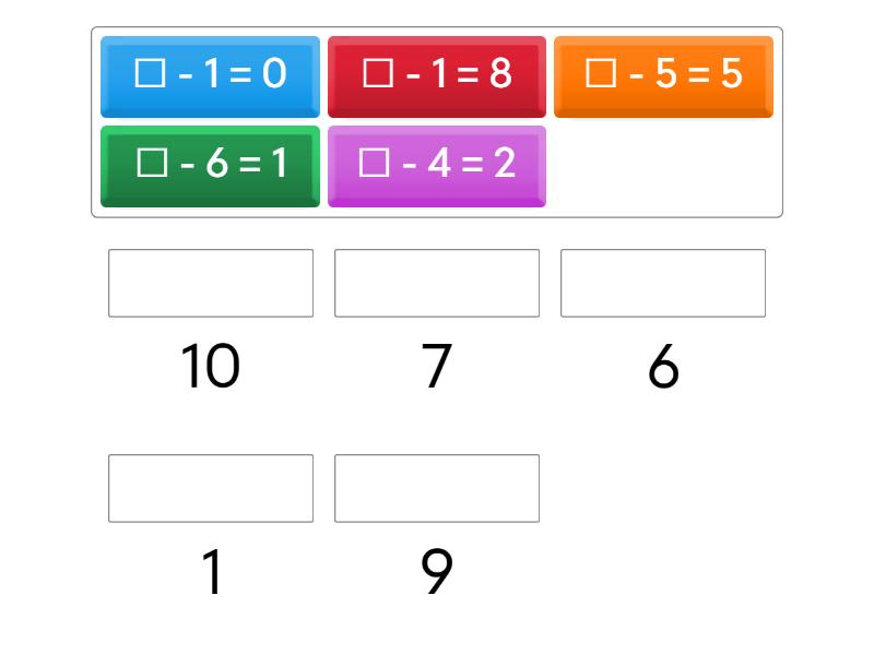 ☐ - 4 = 2 - 6, ☐ - 1 = 0 - 1, ☐ - 6 = 1 - 7, ☐ - 1 = 8 - 9, ☐ - 5 = 5 - 10,