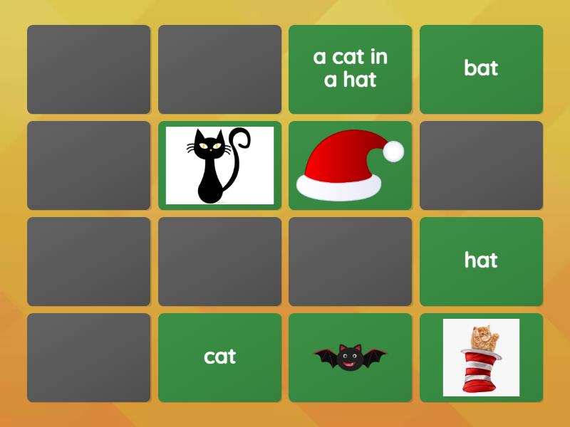 bat, cat, hat, a cat in a hat, mat, sat, cot, dot,