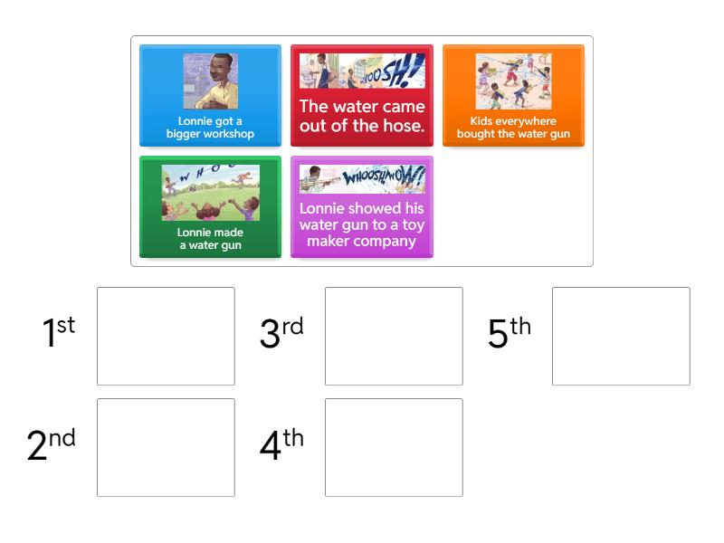 : The water came out of the hose. , Lonnie made a water gun , Lonnie showed his water gun to a toy maker company , Kids everywhere bought the water gun , Lonnie got a bigger workshop,