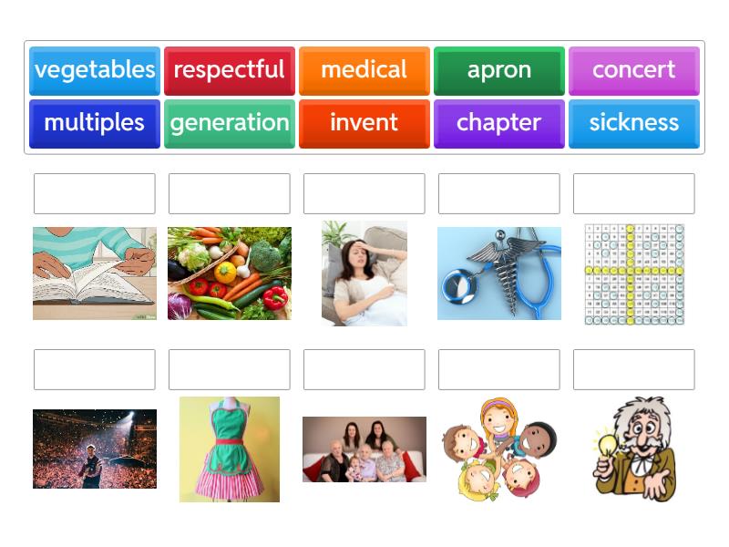 sickness, concert , chapter, apron, generation, multiples, respectful, medical, invent, vegetables,