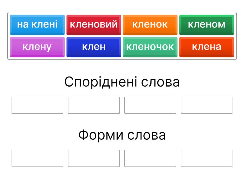 Форми слова, споріднені слова