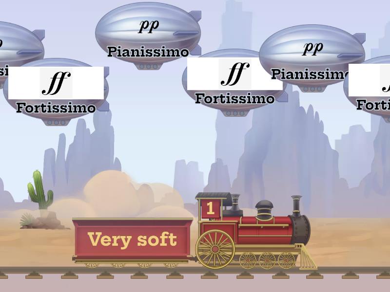 Fortissimo - Very loud, Forte - Loud, Mezzo forte - Moderately loud, Mezzo piano - Moderately soft, Piano - Soft, Pianissimo - Very soft, Crescendo - Gradually getting louder, Diminuendo - Gradually getting softer,