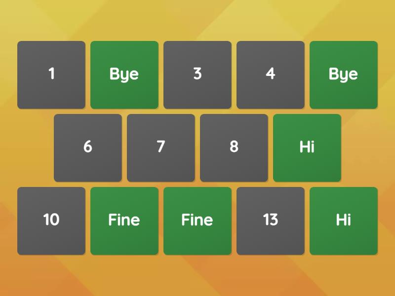 Fine, Hi, Bye, Hello, How are you?, My name is___, I am fine!,