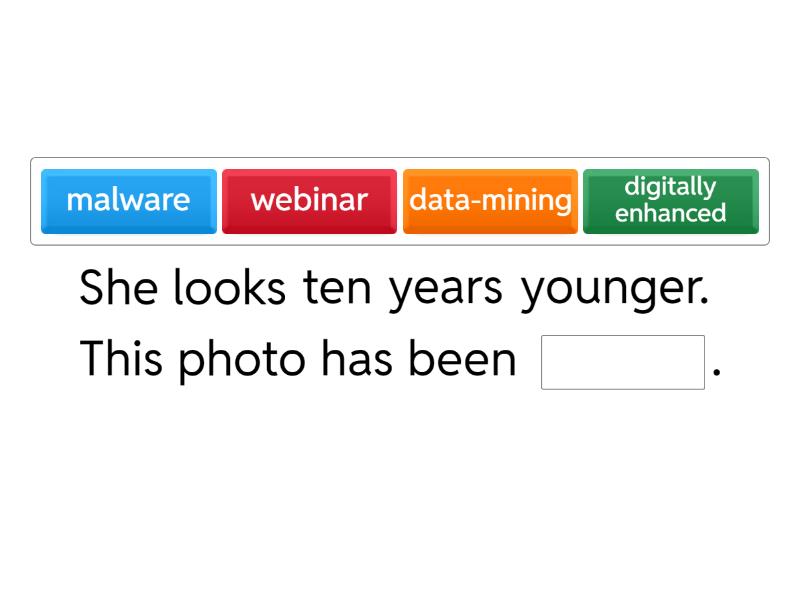 She looks ten years younger. This photo has been ____. You can download great ____ of radio programmers from this website. ____ is the term for stealing digital information from computers. If you have any information to share about the town, please place it on the town ____. ____ is not the same as coal mining. You can get software to protect your computers from ____. I attended a very interesting ____ with students logging in from all over the world.