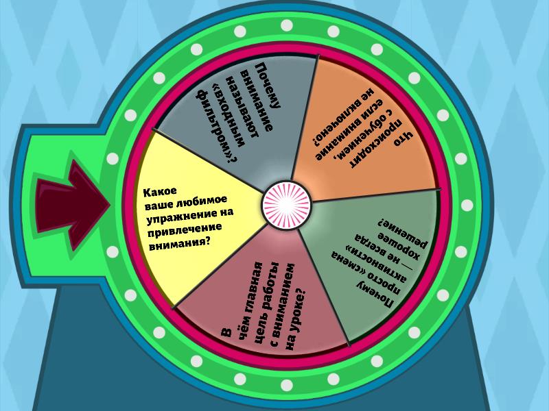 1) Почему внимание называют «входным фильтром»? 2) Что происходит с обучением, если внимание не включено? 3) Почему просто «смена активности» — не всегда хорошее решение? 4) В чём главная цель работы с вниманием на уроке? 5) Какое ваше любимое упражнение на привлечение внимания?