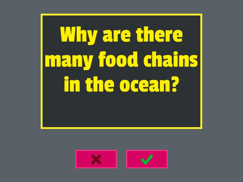 Part 1 - e, What are all the sea creatures looking for? - Food, What does the coral polyp catch? - A small fish, Who eats the coral polyp? - The energy moves from the fish to the polyp, What sound does the parrotfish make when it eats the polyp? - The parrotfish, What does the parrotfish eat? - Crrrrruchhh!, Who eats the parrotfish? - The blacktip reef shark, What happens to energy when one animal eats another? - The energy moves to the shark, How does the blacktip reef shark get its energy? - Its sharp teeth, What keeps the parrotfish alive? - By eating the parrotfish, What is the name of the path that energy follows from one animal to another? - A food chain, P2 - s, Why are there many food chains in the ocean? - There are many food chains in the ocean because sea creatures eat more than one thing., What do sea turtles and surgeonfish both eat? - Sea turtles and surgeonfish both eat grasses., What do all the food chains in the ocean connect to form? - All the food chains in the ocean connect to form a food web., What moves from creature to creature in the food web? - Energy moves from creature to creature in the food web., Who is connected to the ocean? - People are connected to the ocean.,