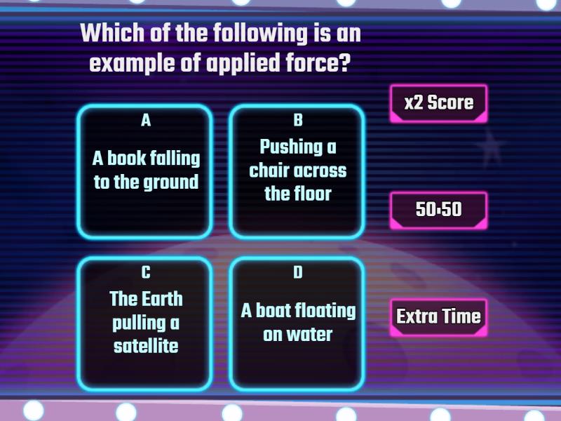 1) Which of the following is an example of applied force? a) A book falling to the ground b) Pushing a chair across the floor c) The Earth pulling a satellite d) A boat floating on water 2) Which force acts to pull objects toward the Earth's center? a) Friction b) Upthrust c) Gravity d) Normal force 3) What does normal force do in relation to gravity? a) It pulls objects toward the Earth b) It acts against gravity and supports objects placed on surfaces c) It prevents objects from moving d) It causes objects to float on water 4) Upthrust is an upward force exerted by _____ that works against gravity. a) Water b) Air c) A person d) The ground 5) Friction occurs between: a) Two solid objects only b) Air and water c) Two surfaces in contact d) Only moving objects 6) Which of the following forces acts against the motion of objects moving through air? a) Friction b) Normal force c) Air resistance d) Water resistance 7) Which type of friction is experienced by an object moving through water? a) Air resistance b) Friction c) Water resistance d) Normal force 8) A skydiver with a parachute will experience greater: a) Gravity b) Air resistance c) Normal force d) Upthrust 9) Water resistance is experienced more by a fish with: a) A narrow body b) A smooth skin c) A wide body d) A fast swimming speed 10) Which of the following forces acts to slow down a moving object by opposing its motion? a) Gravity b) Air resistance c) Normal force d) Upthrust