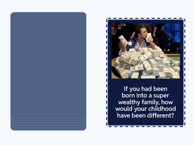 If you hadn't been named by your parents, how would you have called yourself?, Where would you have gone on holiday last summer if you had had the chance to go anywhere?, What hobby would you have taken up in your childhood if you had had a choice back then?, If you had been able to eat whatever you wanted as a child, what would you have eaten?, If you had been able to choose your career when you were a child, what would you have chosen?, If you had been born into a super wealthy family, how would your childhood have been different?, Which TV show would you have avoided if you had known it was bad?.