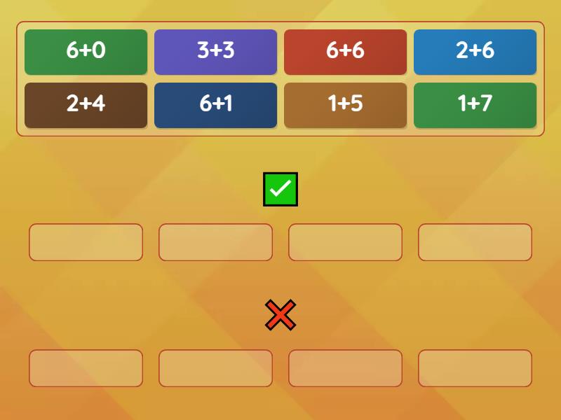 ✅: 1+5, 6+0, 2+4, 3+3, ❌: 6+1, 1+7, 2+6, 6+6,