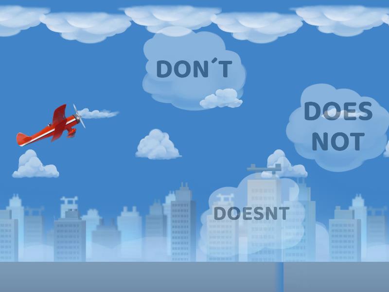 1) YOU ________ LIKE COFFEE a) DON'T b) DOESN'T c) LIKE d) LIKES e) DOSEN'T f) DOES LIKE 2) HE __________ GO TO THE PARK a) DON'T b) DOESN'T c) GOES d) GON'T e) DO SEN'T f) GOSEN'T 3) MARK AND TOM _______ STUDY ENGLISH a) DOESN'T b) DONSEN'T c) DON'T d) STUDIES e) STUDY f) DO NOTS 4) the cat ___ drink milk a) dont b) doesnt c) likes d) like e) donnot f) dosent 5) the students______ do the homework a) dosent b) doesnt c) do d) like e) don't 6) HE _____ PLAY THE GUITAR a) DOESN´T b) DOSENT c) DOES NO 7) WE _____ HAVE BREAKFAST AT 10 a) DOESNT b) DOES NOT c) DON´T
