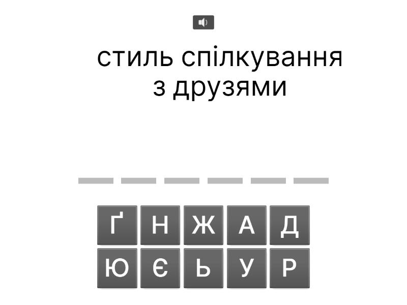 ЖЕСТИ - засіб невербального спілкування, МІМІКА - вираз обличчя, СЛОВА - основа вербального спілкування, ГОЛОС - важливий елемент вербального спілкування, УВАГА - необхідна для ефективного спілкування, ДРУЖНЄ - стиль спілкування з друзями, СІМЕЙНЕ - стиль спілкування в родині, ДІЛОВЕ - стиль спілкування в офіційних ситуаціях, ВЕРБАЛЬНЕ - спілкування словами, НЕВЕРБАЛЬНЕ - спілкування без слів, УКРАЇНСЬКА - мова, що є державною в Україні, СПІЛКУВАННЯ - взаємодія між людьми, МОВА - система знаків для спілкування, ВЗАЄМОДІЯ - ключовий елемент спілкування,