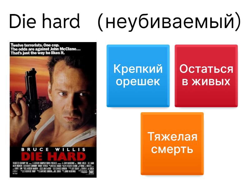 1) Die hard (неубиваемый) a) Крепкий орешек b) Остаться в живых c) Тяжелая смерть 2) Lost (потерянный) a) Застрявшие в лабиринте b) Остаться в живых c) Потеря 3) The Hangover (похмелье) a) На следующее утро b) Мальчишник в Вегасе c) Правда или действие d) Как в последний раз 4) The ring (кольцо) a) Кольцо смерти b) Статика c) Не смотри d) Звонок 5) Fair game (честная игра) a) Игра по правилам b) Игра на выбывание c) Монополия d) Игра без правил