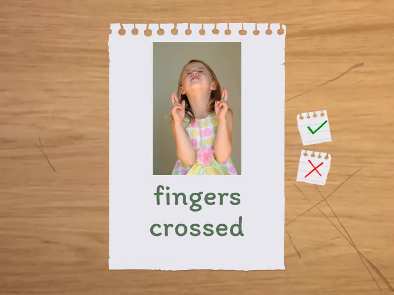 fingers crossed, twist arm, stab in the back, turn a blind eye, pull a leg, to back off, flashback, get off, jump the line, up to it,