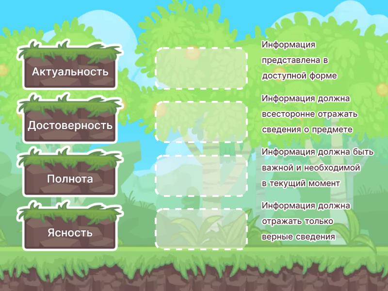 Полнота - Информация должна всесторонне отражать сведения о предмете, Актуальность - Информация должна быть важной и необходимой в текущий момент, Достоверность - Информация должна отражать только верные сведения, Ясность - Информация представлена в доступной форме,