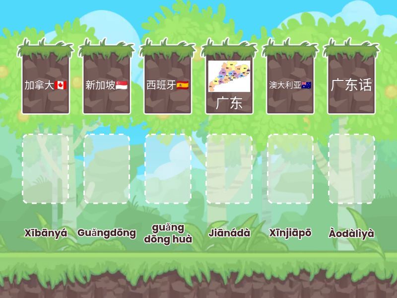 加拿大🇨🇦 - Jiānádà, 澳大利亚🇦🇺 - Àodàlìyà, 西班牙🇪🇸 - Xībānyá, 新加坡🇸🇬 - Xīnjiāpō, 广东 - Guǎngdōng, 广东话 - guǎng dōng huà,