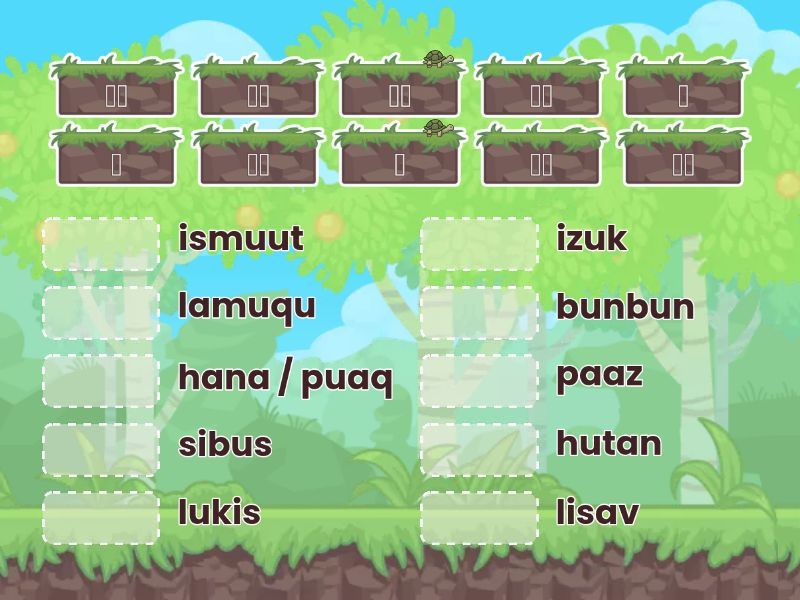 花 - hana / puaq, 草 - ismuut, 樹 - lukis, 葉子 - lisav, 地瓜 - hutan, 玉米 - lamuqu, 稻子 - paaz, 香蕉 - bunbun, 橘子 - izuk, 甘蔗 - sibus,