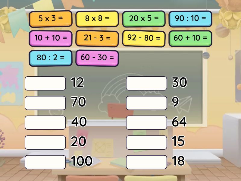10 + 10 =  - 20, 60 - 30 = - 30, 90 : 10 = - 9, 60 + 10 = - 70, 5 x 3 =  - 15, 21 - 3 = - 18, 80 : 2 = - 40, 20 x 5 = - 100, 92 - 80 = - 12, 8 x 8 = - 64,