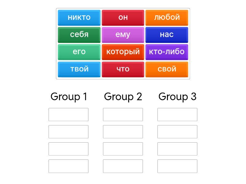 Найди личные местоимения: Она, нас, Я, ему, Найди отрицательные местоимения: Никого, никто, Ничем, Ни у кого, Найди определительные местоимения: любой, каждый, всякий, другой,
