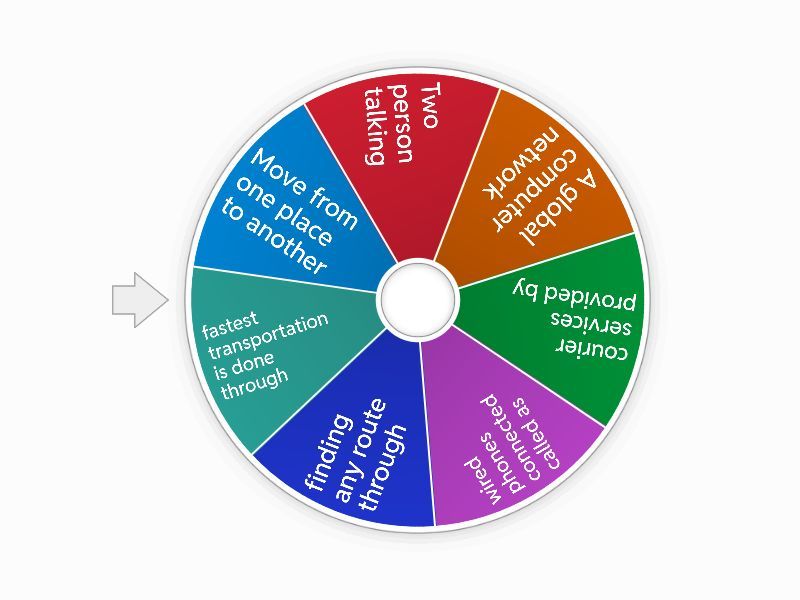 1) Move from one place to another a) b) 2) Two person talking a) b) 3) A global computer network a) b)   4) courier services provided by  a) b) 5) wired phones connected called as  a) b) 6) finding any route through a) b) 7) fastest transportation is done through a) b)