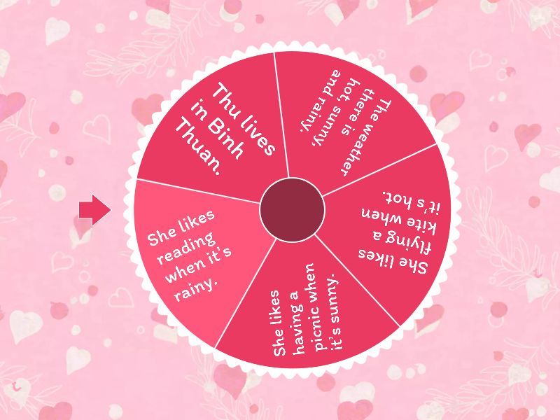 1) Thu lives in Binh Thuan. a) True  b) False 2) The weather there is hot, sunny, and rainy. a) True b) False 3) She likes flying a kite when it’s hot. a) True b) False 4) She likes having a picnic when it’s sunny. a) True b) False 5) She likes reading when it’s rainy. a) True b) False