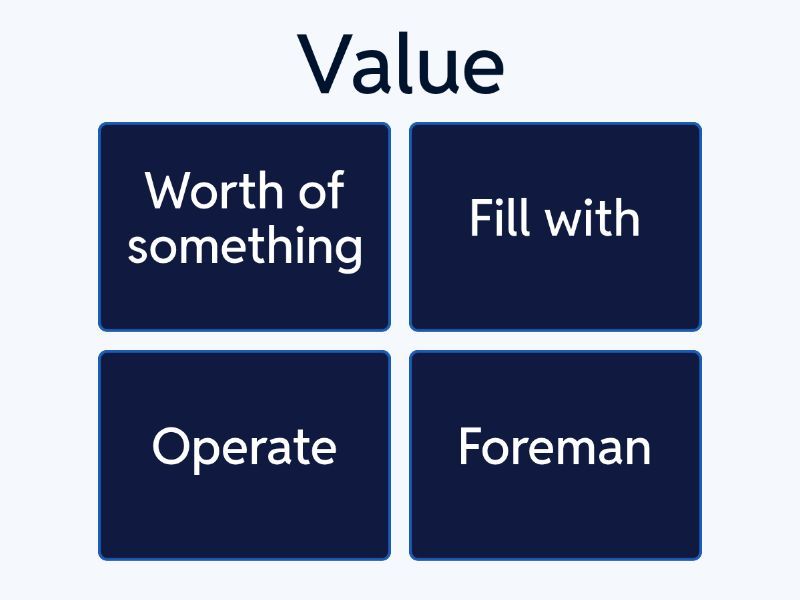 1) Value a) Worth of something b) Fill with c) Operate d) Foreman 2) Fill with a) Worth of something b) Operate c) Load completely d) Foreman 3) Operate a) Worth of something b) Control function c) Foreman d) Obligatory 4) Restock a) Worth of something b) Arrange again c) Foreman d) Obligatory 5) Maintain a) Keep in condition b) Foreman c) Obligatory d) Mileage 6) Foreman a) Worth of something b) Supervisor c) Obligatory d) Mileage 7) Return a) Give back b) Foreman c) Obligatory d) Mileage 8) Obligatory a) Required b) Foreman c) Mileage d) Breakdown van 9) Mileage a) Distance traveled b) Foreman c) Breakdown van d) Profitable 10) Breakdown van a) Repair vehicle b) Foreman c) Profitable d) Assignment 11) Profitable a) Financially beneficial b) Foreman c) Assignment d) Obligatory 12) Assignment a) Task given b) Foreman c) Obligatory d) Mileage