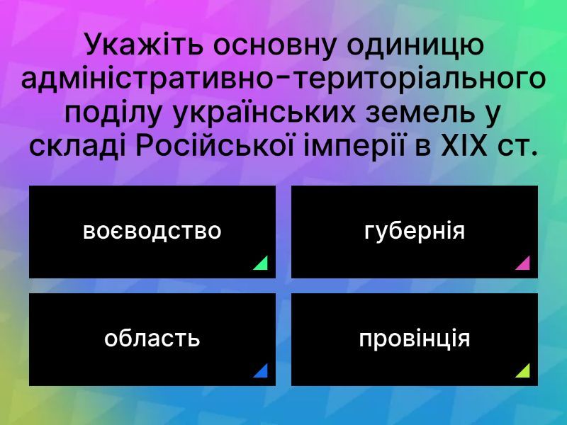 12. НМТ. Вікторина. Укр землі у скл. Рос. імп. наприкінці 18- у перш. пол 19 ст. 9кл.