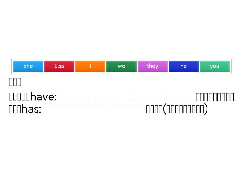 先想想 哪些主詞用have: ____ ____ ____ ____ 我、我們、你、他們 哪些是has: ____ ____ ____ 他她名字(要依照中文順序填空) I ____ a headache. She ____ a toothache. You ____ a stomachache. He ____ a sore throat. Lily ____ a fever. Lily and Peter ____ a cold. We ____ a headache. Your mother ____ a runny nose. Does Elsa ____ a fever? Yes, she ____. She ____ a cold. Does your sister ____ a cough? No, she ____. She ____ a headache.