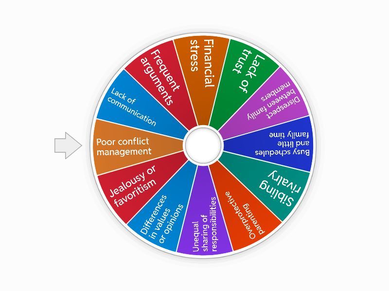 1) Lack of communication 2) Frequent arguments 3) Financial stress 4) Lack of trust 5) Disrespect between family members 6) Busy schedules and little family time 7) Sibling rivalry 8) Overprotective parenting 9) Unequal sharing of responsibilities 10) Differences in values or opinions 11) Jealousy or favoritism 12) Poor conflict management