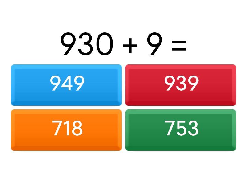 1) 624 + 3 = a) 514 b) 550 c) 561 d) 627 2) 748 + 2 = a) 728 b) 750 c) 755 d) 759 3) 402 + 5 = a) 407 b) 440 c) 504 d) 641 4) 541 + 8 = a) 348 b) 363 c) 549 d) 734 5) 806 + 7 = a) 790 b) 812 c) 813 d) 893 6) 633 + 4 = a) 500 b) 624 c) 626 d) 637 7) 128 + 5 = a) 117 b) 133 c) 343 d) 578 8) 631 + 4 = a) 579 b) 635 c) 642 d) 672 9) 930 + 9 = a) 718 b) 753 c) 939 d) 949 10) 476 + 2 = a) 385 b) 426 c) 443 d) 478 11) 322 + 7 = a) 246 b) 302 c) 329 d) 506 12) 388 + 3 = a) 208 b) 227 c) 391 d) 423 13) 244 + 8 = a) 252 b) 297 c) 336 d) 564 14) 114 + 1 = a) 115 b) 184 c) 318 d) 362 15) 817 + 6 = a) 682 b) 823 c) 926 d) 955