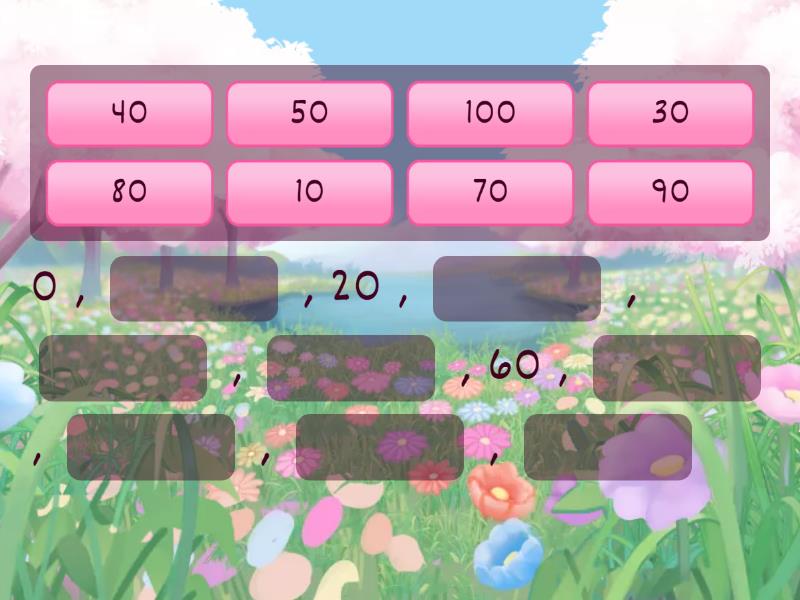 0 , ____ , 20 , ____ , ____ , ____ , 60 , ____ , ____ , ____ , ____