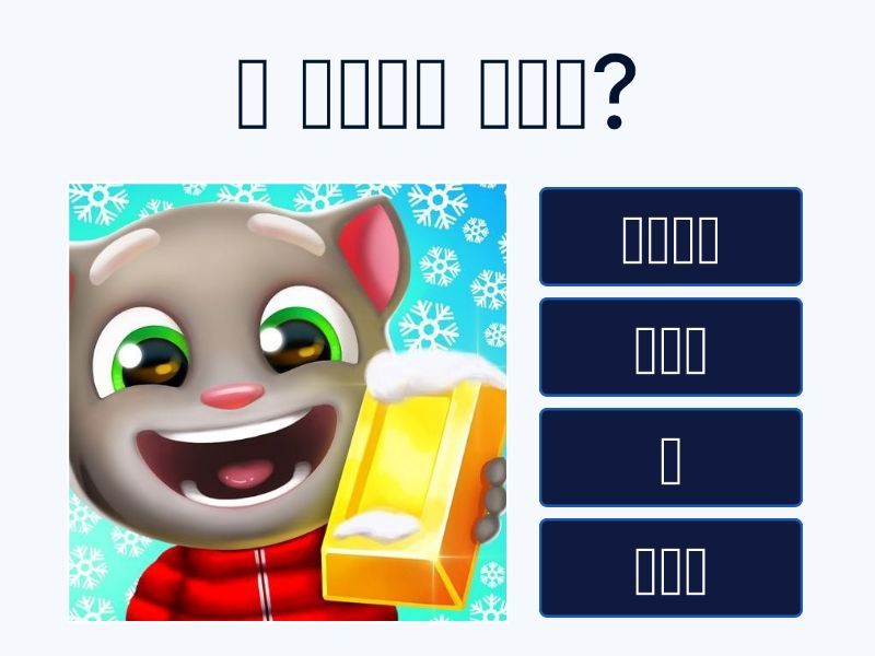 1) 이 캐릭터의 이름은? a) 안젤리나 b) 유찬미 c) 톰 d) 한교동 2) 이 캐릭터의 이름 a) 토킹벤 b) 발레리나 카푸치나 미미미 c) 퉁퉁퉁퉁퉁퉁퉁퉁퉁 사우르 d) 브르르 바타빔 3) 이 캐릭터의 이름 a) 토킹진저 b) 테토남 c) 안젤라 d) 에겐남 4) 나의(찬미) 최고 점수는? (운빨) a) 501만 b) 500만 c) 100만 d) 144만9천 5) 나는(찬미) 톰 골드런 집을 전체 다 완성 했을까? a) 집 1개남음 b) 아니요 c) 네 d) 다 완성함