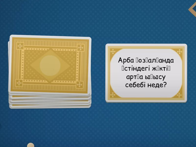 Ньютонның бірінші заңы қалай аталады?, Дене сыртқы күш әсер етпесе, қандай күйін сақтайды?, Инерция дегеніміз не?, Ньютонның бірінші заңы қай санақ жүйесінде орындалады?, Инерциялық санақ жүйесіне мысал келтір., Кенет тоқтаған көлікте адам неге алға ұмтылады?, Дене қозғалысын тоқтататын күш қалай аталады?, Арба қозғалғанда үстіндегі жүктің артқа ығысу себебі неде?, Ньютонның бірінші заңы не мен нені байланыстырады?, Инерция құбылысын күнделікті өмірден бір мысалмен түсіндір..