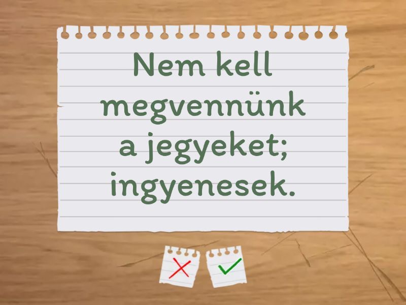 Tanulnom kell a dolgozatra. - I have to study for the test., Korán kell munkába mennie. - She has to go to work early., Ki kell takarítanunk a házat ma. - We have to clean the house today., Egyenruhát kell viselniük az iskolában. - They have to wear uniforms at school., Be kell fejeznie a házi feladatát vacsora előtt. - He has to finish his homework before dinner., Nem kellett bemennie az irodába múlt héten? - Didn't she have to go to the office last week?, Nem kell korán kelnem hétvégén. - I don’t have to wake up early on weekends., Ezt majd csak holnap kell elküldenem. - I will have to send this only tomorrow., Nem kell főznie ma este. - She doesn’t have to cook tonight., Nem kell megvennünk a jegyeket; ingyenesek. - We don’t have to pay for the tickets; they’re free., Nem kell magukkal hozniuk a könyveiket holnap. - They don’t have to bring their books tomorrow., Péternek nem kell dolgoznia vasárnaponként. - Péter doesn’t have to work on Sundays., Fel kell hívnom most őt? - Do I have to call him now?, El kell már indulnia? - Does she have to leave already?, Tegnap kellett befejezned ezt a projektet? - Did you have to finish this project yesterday?, Ki kell takarítania a szobáját minden nap? - Does he have to clean his room every day?, Nem kellett dolgoznom, amikor gyerek voltam. - I didn't have to work when I was a child., Amikor nyugdíjas leszel, nem kell majd dolgoznod. - When you become retired, you won't have to work.,