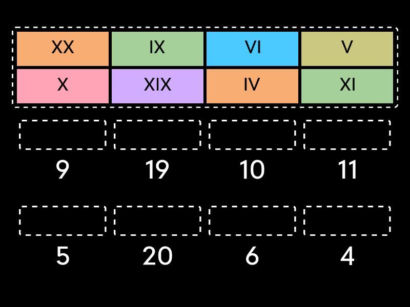 IV - 4, V - 5, VI - 6, IX - 9, X - 10, XI - 11, XIX - 19, XX - 20,