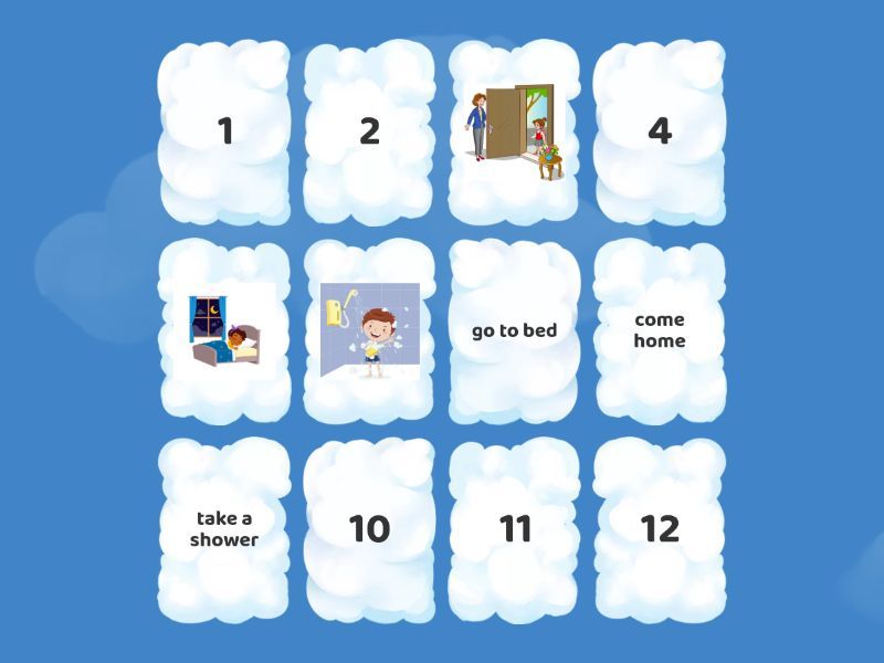 come home, take a shower, go to bed, wash/do the dishes, do housework, tidy the room,